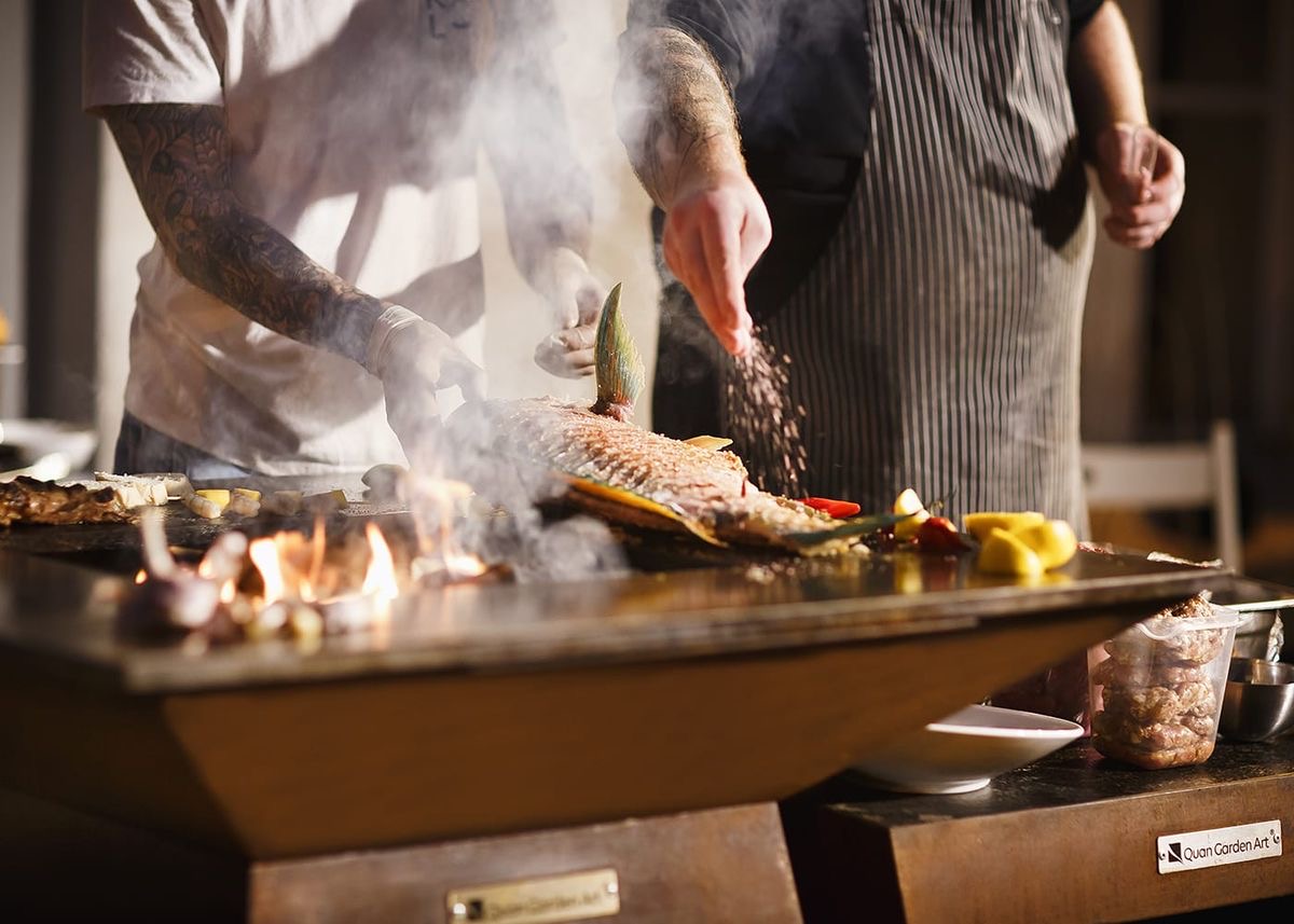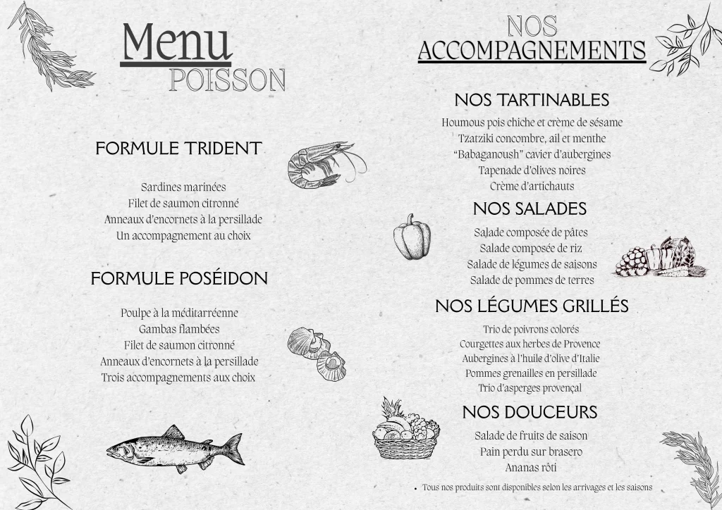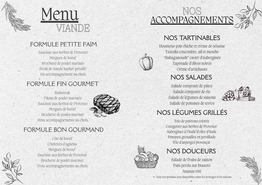 - La préparation et la cuisson sur place (viandes, poissons, légumes, etc.)