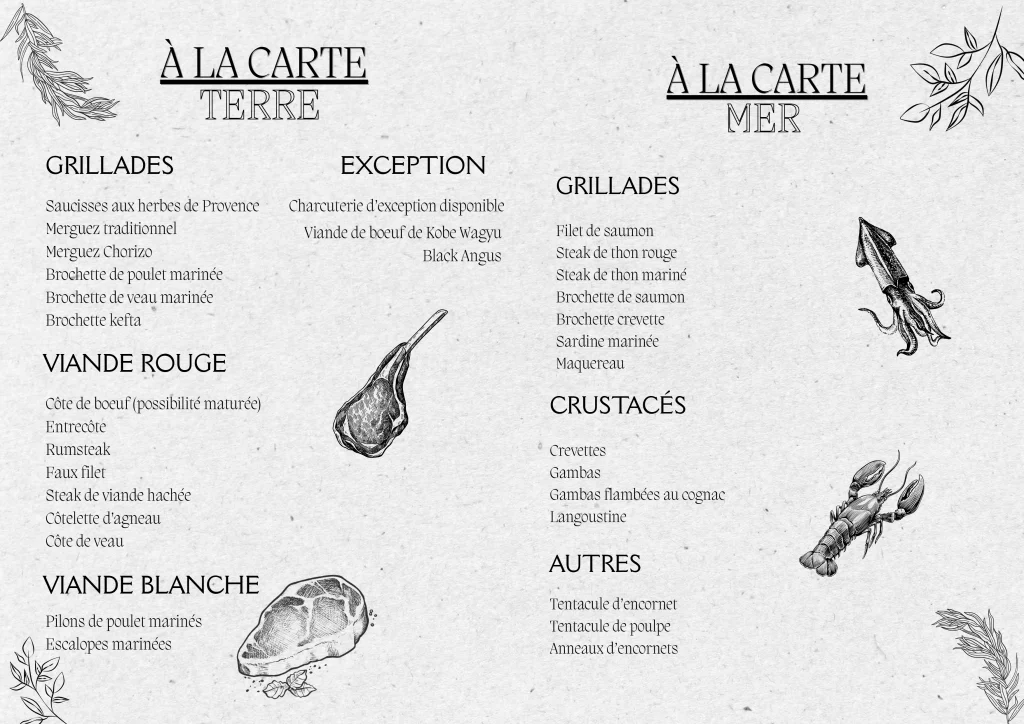 Choisissez parmi notre carte variées : viande, poisson, végétarien... Il y en a pour tous les goûts !